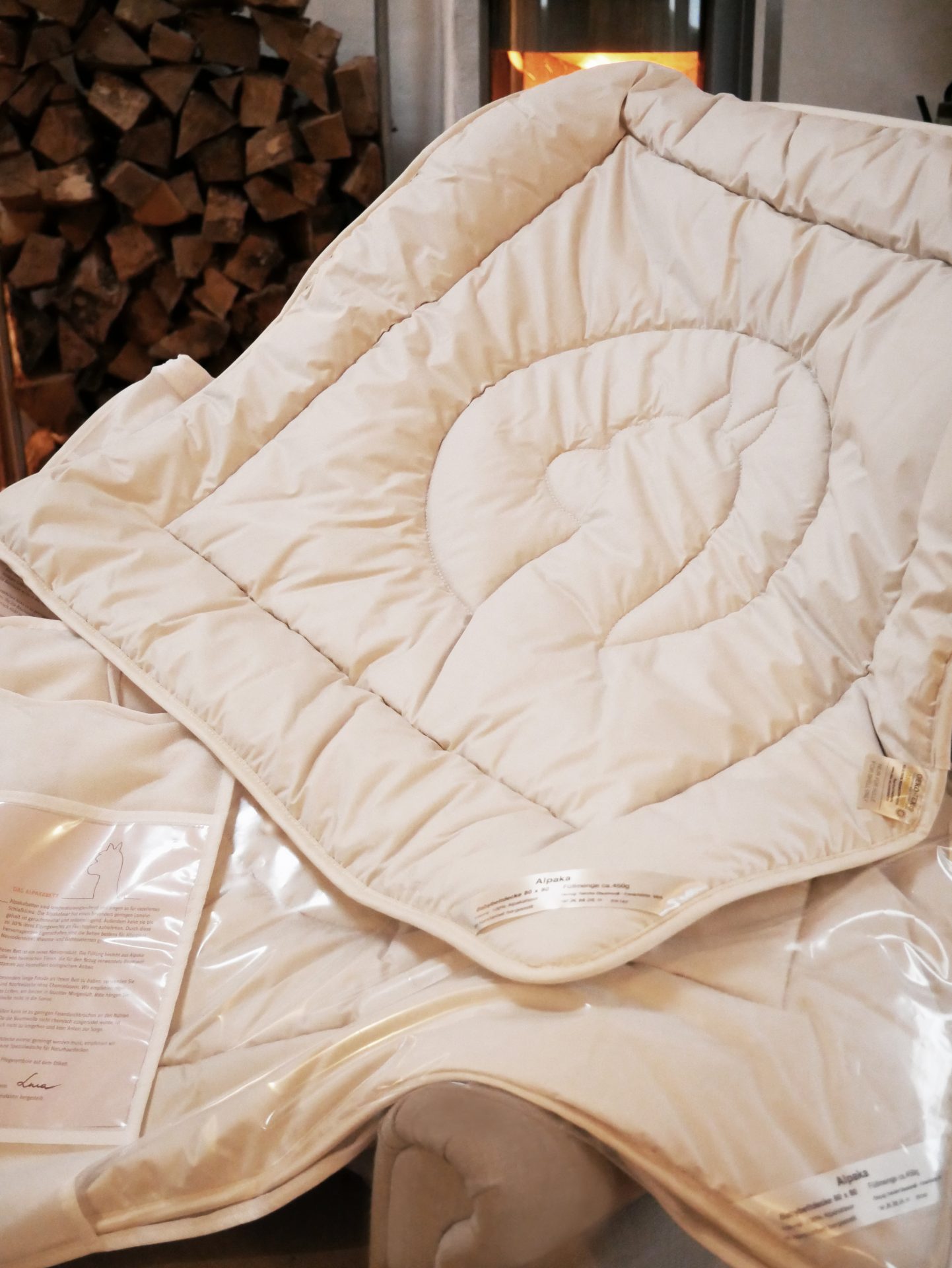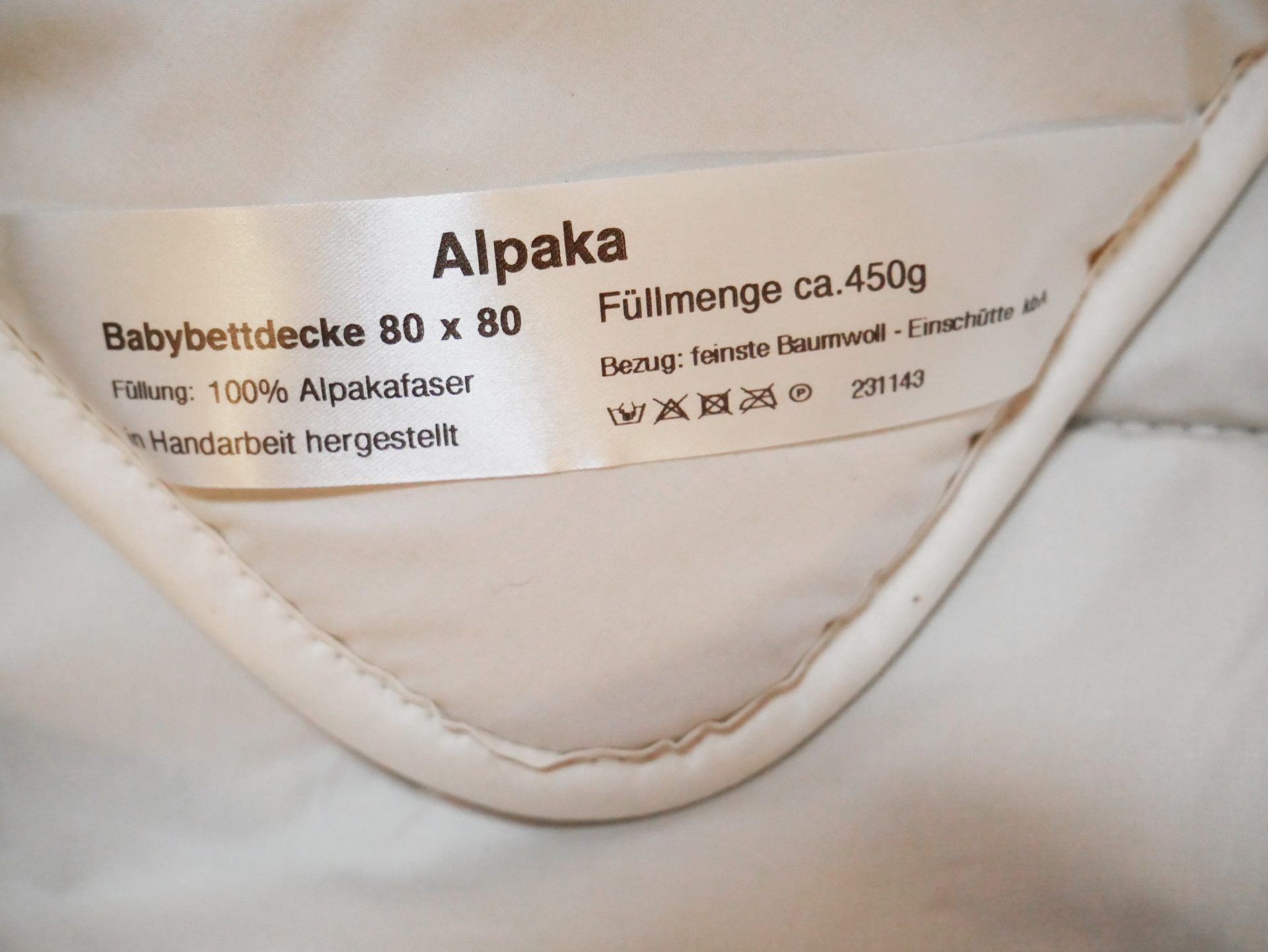Alpakafasern sorgen auf Grund ihrer besonderen Proteinstruktur für einen optimalen Temperaturausgleich. Bei Kälte hält Alpakawolle herrlich warm und im Sommer leitet sie überschüssige Wärme ab. Ebenso kann sie bis zu 30 % ihres Eigengewichtes an Feuchtigkeit aufnehmen, bevor sie sich feucht anfühlt. Eingefasst ist die Wolle in feinste, unbehandelte Baumwolle aus kontrolliert biologischem Anbau. Durch den äußerst geringen Lanolingehalt der Wolle ist die geruchsneutrale Decke bestens für (Staub-)-Allergiker sowie Neurodermitiker geeignet.