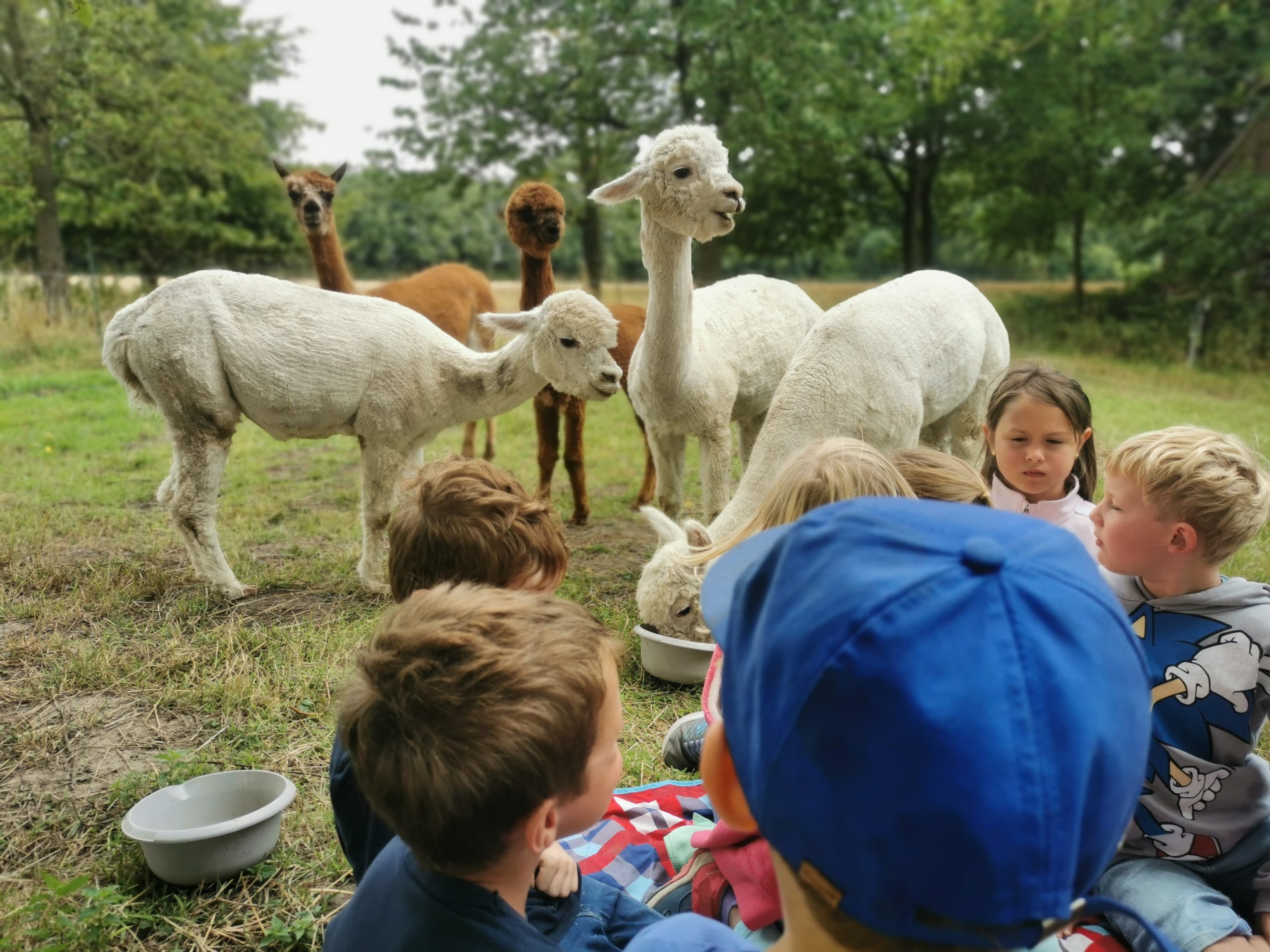 Unser Hof ist der ideale Ort, um mit der Natur und Tieren in Kontakt zu kommen. Das befreit und macht glücklich. Die Hofstelle bietet eine großzügige, ebenerdige Bewegungsfläche und ist daher auch gut geeignet für Menschen mit eingeschränkter Mobilität. Unsere Alpakas, Rinder, Mini-Ponies und Hühner befinden sich in direkt angrenzenden Ställen und Weiden und freuen sich auf Besucher allen Alters. Als Treffpunkt zum Verweilen lädt die barrierefreie Tenne ein. Für Erfrischung und einen freien Kopf sorgt ein kleiner Spaziergang in den Wald oder zu unseren Weiden.